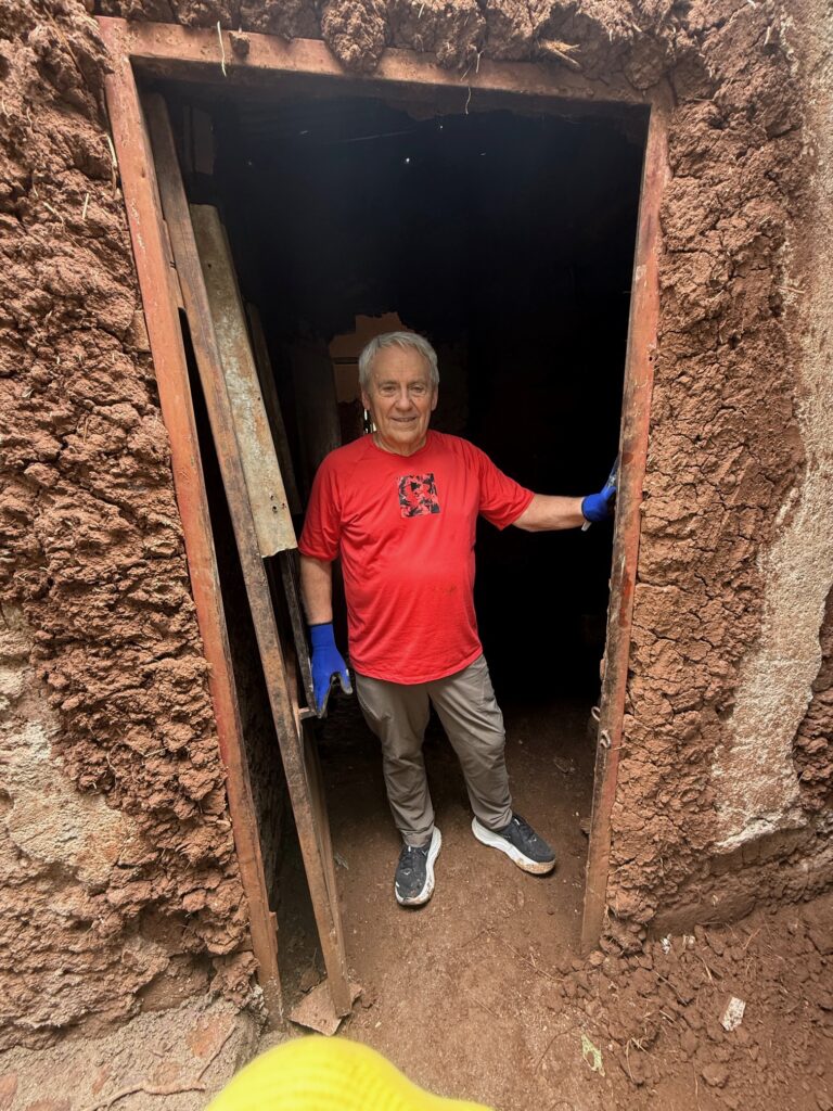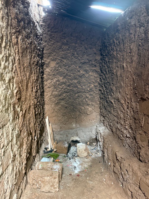 Picture showing the existing kitchen before the coming improvements. Large rocks will be placed in the back corner to create a stove to cook on. The rocks will be held together by concrete.